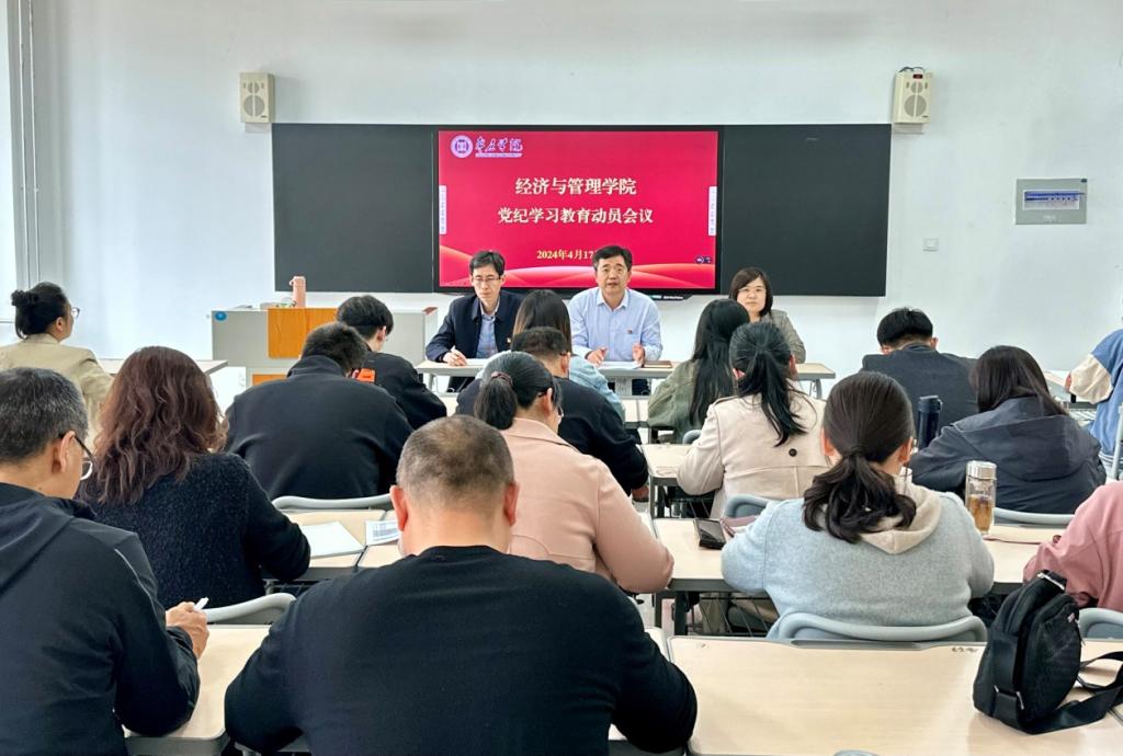 4月17日下午,太阳成集团tyc234cc在薛城校区豁然楼A317室召开党纪学习教育动员会议,公司党委书记艾衍辉讲话,全体教工党员及员工党员代表参会。