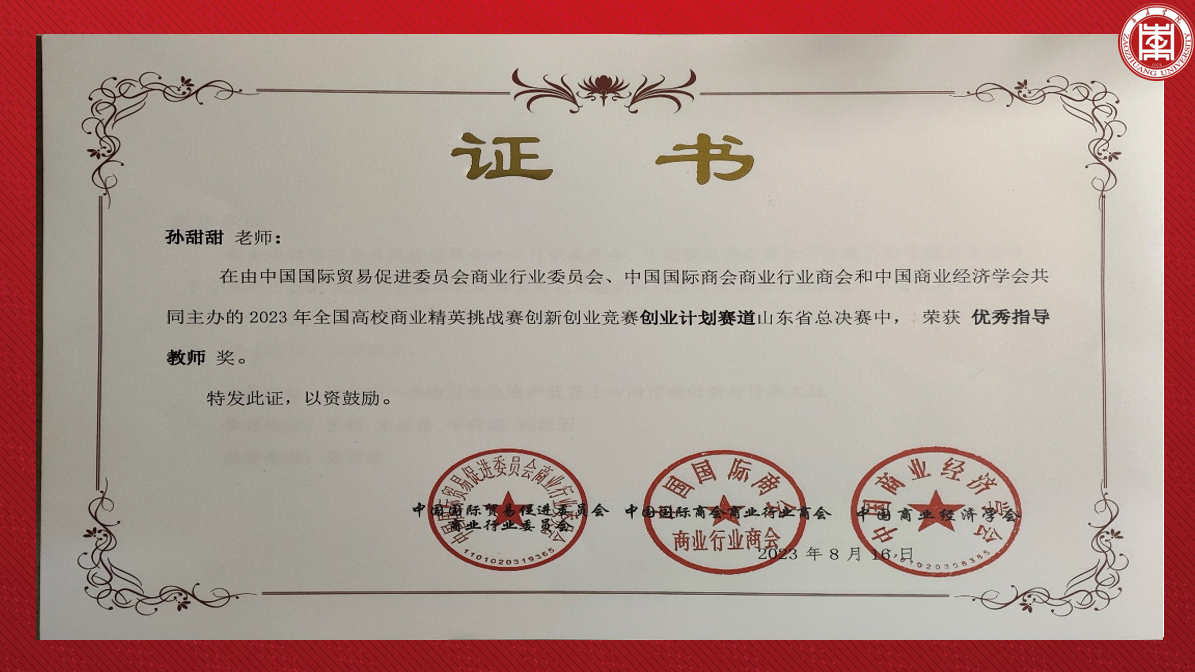 近日,2023年全国高校商业精英挑战赛创新创业竞赛(创业计划赛道)山东省总决赛落下帷幕,创业计划赛道共有来自全省70多所院校的848支队伍入围。由公司代超越、王新两位参赛选手所带领的2个原创项目代表太阳成集团tyc234cc成功入围省级决赛,与全省众多高校同台竞技、力克群雄,并斩获山东省三等奖2项。展现了公司学子扎实的专业能力、卓越的创新精神和出色的团队协作能力。其中公司教师杨金磊、孙甜甜荣获“优秀指导老师”奖。