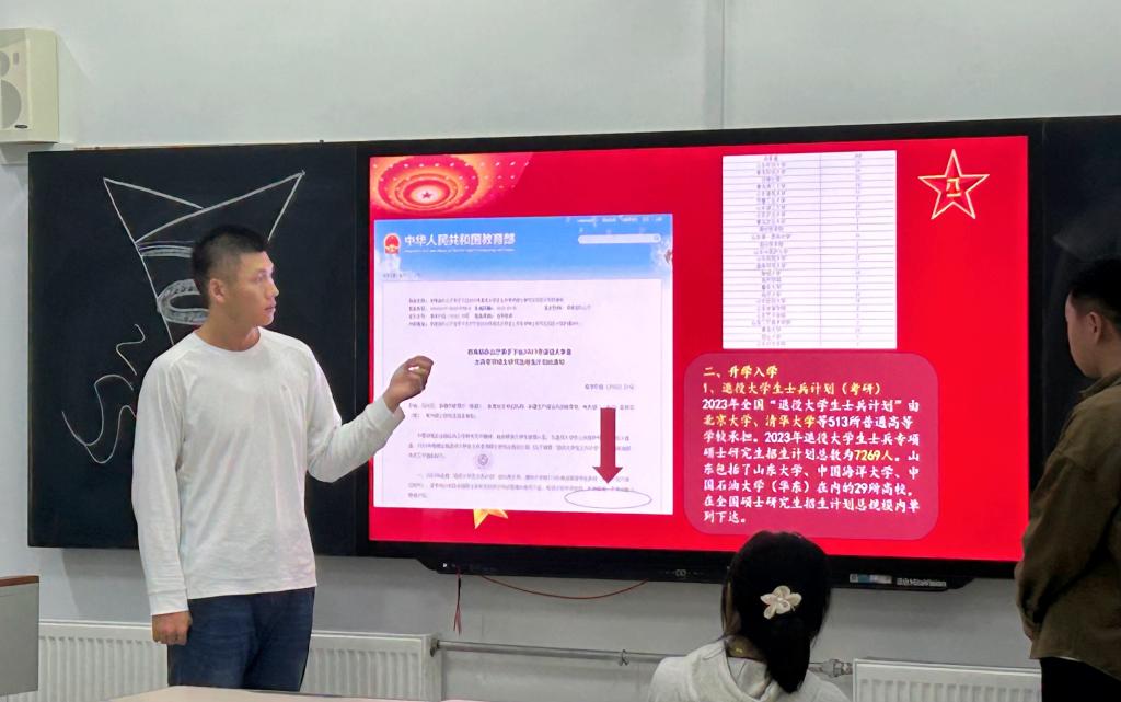 宣讲会上,刘屹等退伍士兵为大家全方位、多角度介绍了老员工入伍政策、入伍基本流程、入伍基本条件、参军退役后优抚安置、就业复学、待遇发放等政策以及注意事项,帮助同学们对征兵流程和各项优惠政策有清晰的认识。他们也结合自身从军经历,讲述了在部队的成长历程和体会,以及应征入伍时可能遇到的问题,极大激发了同学们参军报国、应征入伍的热血情怀。接着他们向同学们介绍了公司意向征兵员工交流群,针对参会员工提出的各类征兵问题,一一进行了答疑解惑,鼓励大家积极踊跃参军入伍、报效祖国。