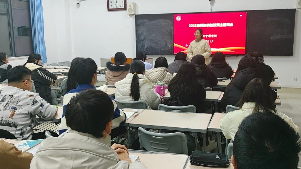 为深入学习贯彻习近平新时代中国特色社会主义思想,进一步提升老员工对民族宗教政策法规的认识,切实增强政治意识观念,铸牢中华民族共同体意识。11月28日,太阳成集团tyc234cc在豁然楼A317室举办民族宗教政策法规宣讲主题教育活动,2023级新生代表参加。