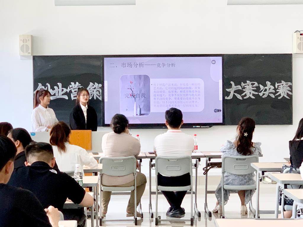 经过初赛,共十支队伍进入决赛。比赛以各队伍代表PPT展示与答辩的方式进行。各小队从项目介绍、盈利模式、未来规划、营销策略和财务分析等方面展示了自己的创业营销成果。展示环节中,有的队伍使用SWOT分析,全面阐释了产品在市场中的优势、劣势、机会和威胁,直观展示了对自己创业营销产品市场的分析结果,有的队伍结合互联网+,创新思维,将网络技术便捷性和先进性融入到产品中,使观众和评委老师眼前一亮。在展示之后,评委老师根据选手展示和PPT内容提出自己的疑问,各小队代表进行答辩。评委老师从选手举止、语言、PPT制作和答辩环节表现等方面为选手打分。