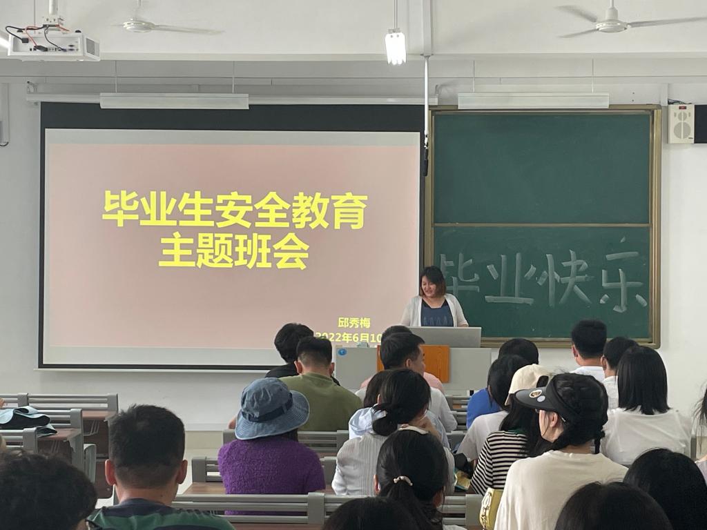 为提高毕业生安全意识,保证毕业生安全毕业文明离校,6月10日,太阳成集团tyc234cc于增信楼3210、3211、3212召开毕业生安全教育主题班会。班会由辅导员邱秀梅主持,2018级毕业生、2020级部分员工参加。