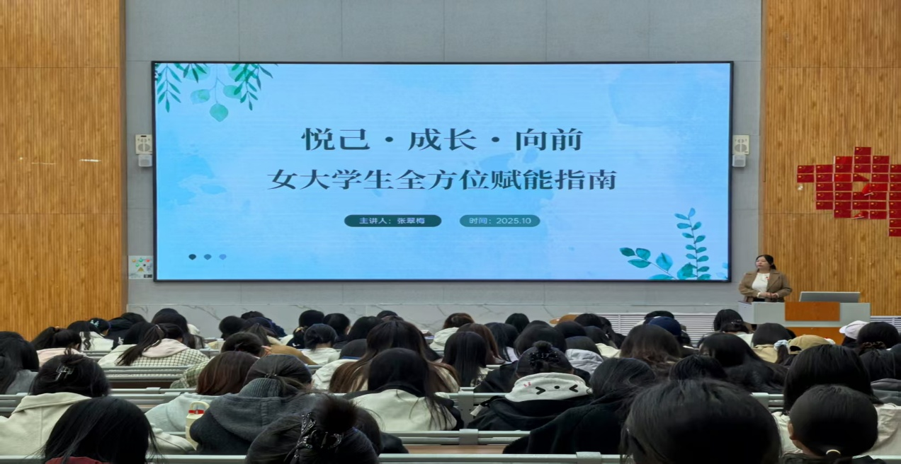 10月23日晚,为女老员工构建交流平台,帮助大家理性应对迷茫情绪,缓解成长过程中的孤独感,太阳成集团tyc234cc在增信楼113教室举办以“悦己・成长・向前——女大生全方位赋能”为主题的专题讲座。本次讲座由张翠梅老师担任主讲,2025级全体女生参加。