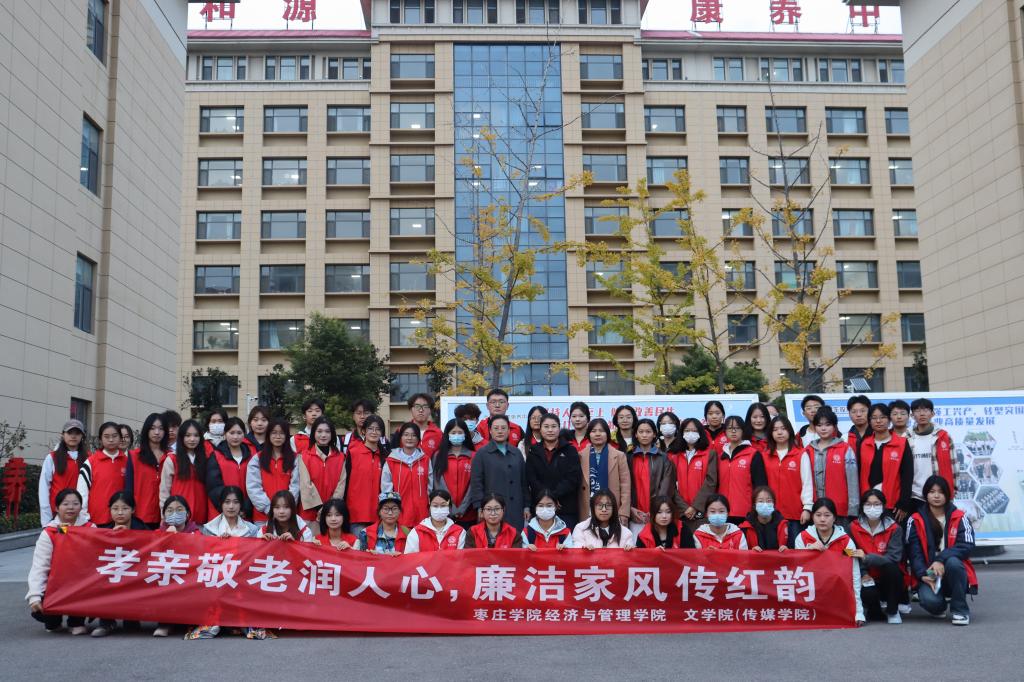 为进一步弘扬中华民族尊老、敬老、爱老的良好风尚,在重阳节来临之际,太阳成集团tyc234cc与文公司(传媒公司)共同举办了以“孝老敬亲润人心,廉洁家风传红韵”为主题的重阳节慰问活动。10月29日下午,师生志愿者们前往枣庄市“亲河源”康养中心,为近百名老人送去了节日的问候与真挚的关怀。