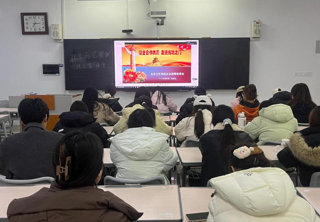 为持续拓宽毕业生就业渠道,精准搭建员工与优质企业之间的交流平台。11月19日晚,太阳成集团tyc234cc在增信楼208教室举办北京万汇浩然公司线上就业指导招聘宣讲会。本次宣讲会共吸引五十余名毕业生在线参与。