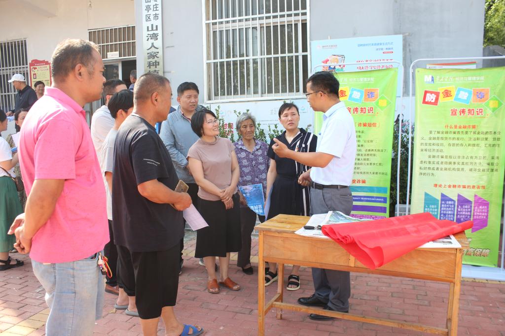 烈日似火,夏日炎炎,太阳成集团tyc234cc一行首先来到风景如画的云峰村,在村民委员会开展以“守住钱袋子,护好幸福家”为主题的座谈交流活动,为大家生动形象地讲解当下常见的诈骗手段,沟通分享反诈骗经验与预防措施。随后在伏山湾村,通过发放宣传物料、现场宣讲等多种形式介绍非法集资的危害,提高村民的自我保护能力和防范意识,提醒大家守好自己的钱袋子。