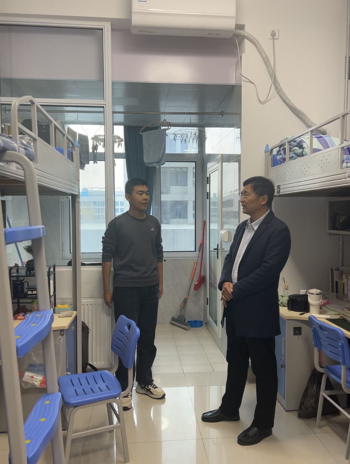 在检查过程中,艾衍辉带领全体辅导员逐一走访了员工宿舍,对宿舍的卫生状况、用电安全等方面进行了重点检查,并亲自查看宿舍的取暖设施是否安全、有效。同时,他还向员工强调了宿舍卫生和安全用电的重要性,提醒大家要注意用电安全,避免火灾等安全隐患的发生。