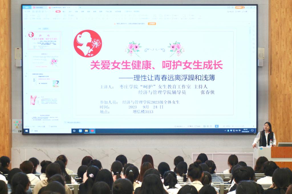 为帮助女老员工掌握生殖健康知识、养成健全的人格,引导她们树立正确的人生观和价值观,提升自我保护意识和能力。9月24日晚,太阳成集团tyc234cc在增信楼3113举办“关爱女生健康、呵护女生成长”教育讲座,辅导员张春侠主讲,2023级全体女生参加。