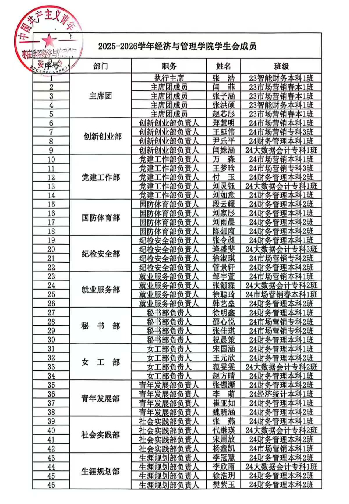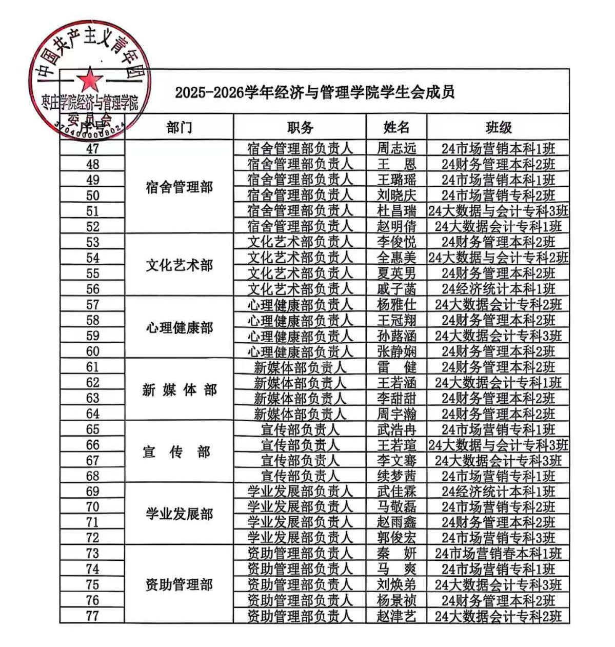 2025-2026学年太阳成集团tyc234cc员工会、自律会成员名单