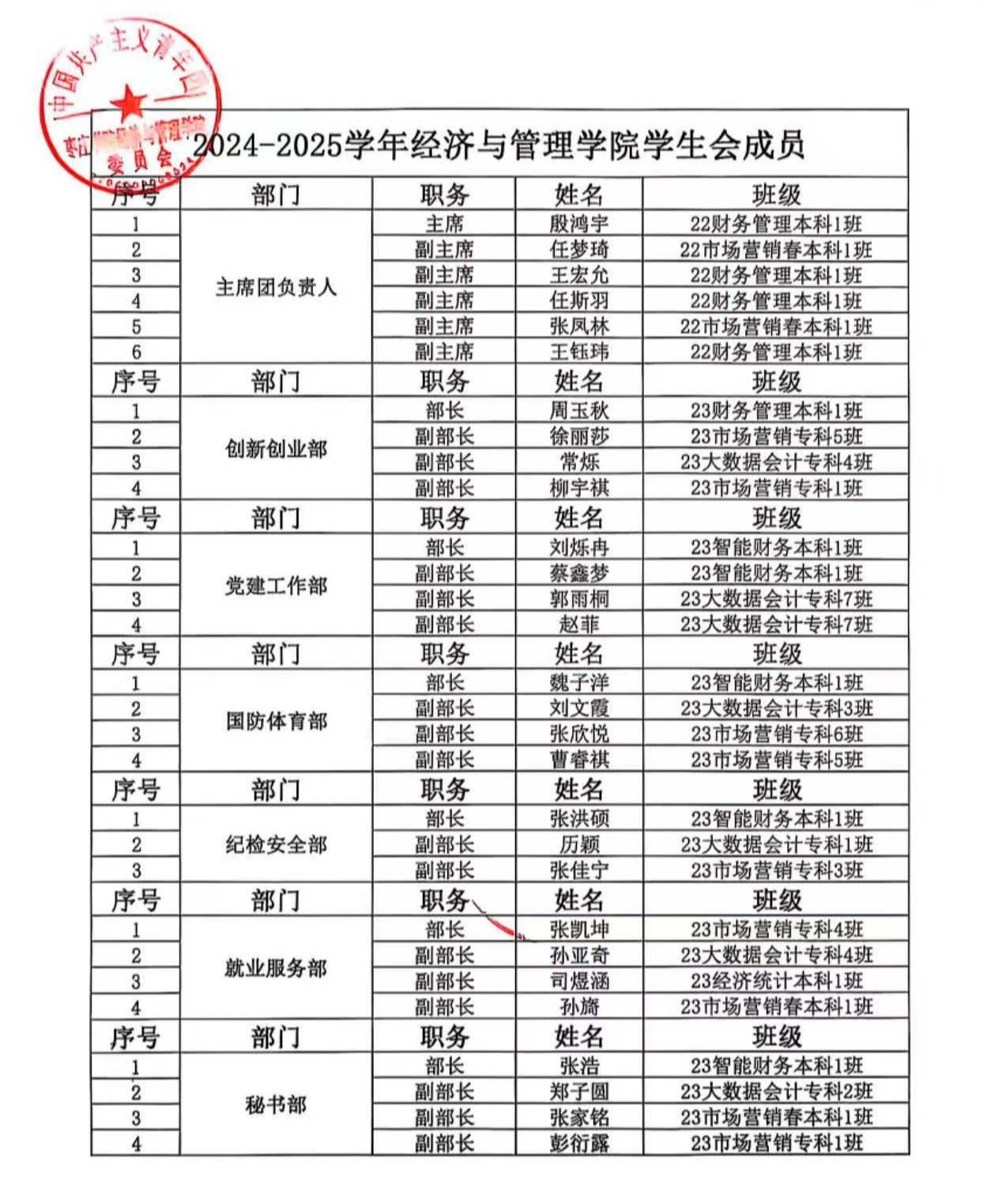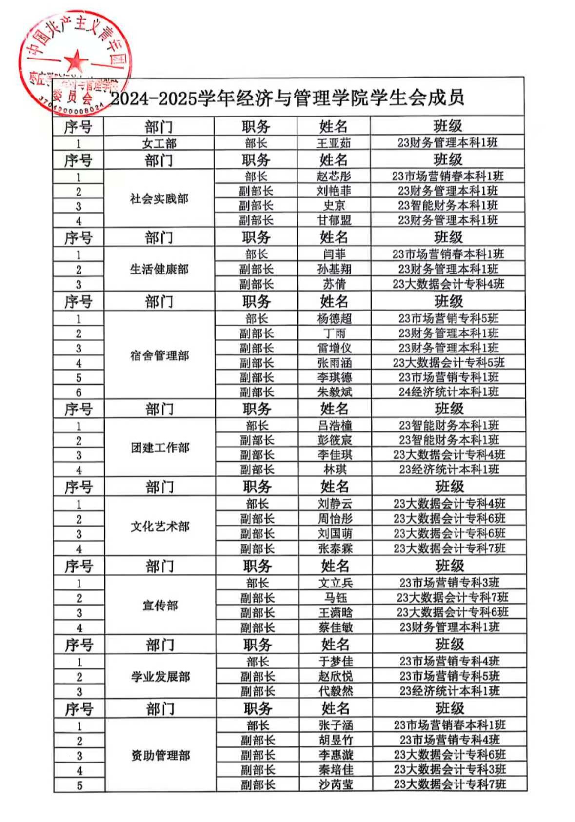 2024-2025学年太阳成集团tyc234cc员工会、自律会成员名单